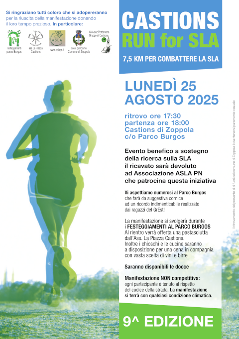 Eventi 25-8-25 – RUN for SLA (Castions di Zoppola) Visto il successo dell’anno scorso siamo... FlorianAgo 7, 2025Ago 29, 2025